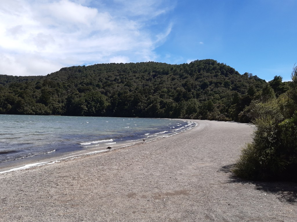 I recently had an opportunity to revisit this majestic lake and I wasn’t disappointed. It still invoked the same sense of seclusion. When the waters are calm, the surface is sleek and has a deep green hue like greenstone rocks that can be found in New Zealand. Unfortunately on the day I was there the wind was billowing down from the volcanic plateau, whipping across the lake and creating waves that disturbed the still green waters that give the lake its name. The picture is taken at Long Beach which is at the half way point of the walking track.